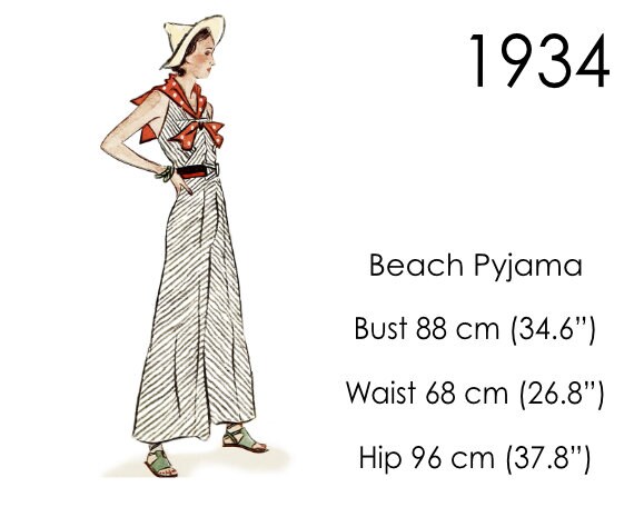 1934 Beach Pyjama Pattern With Wide Leg Pants And Low Back Etsy